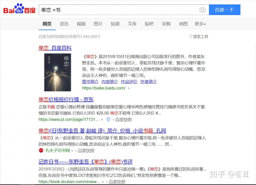 如:搜东野圭吾的《单恋》,目的搜书不希望搜影音或其他含此通俗关键词的网页,那么就可以这样查询。