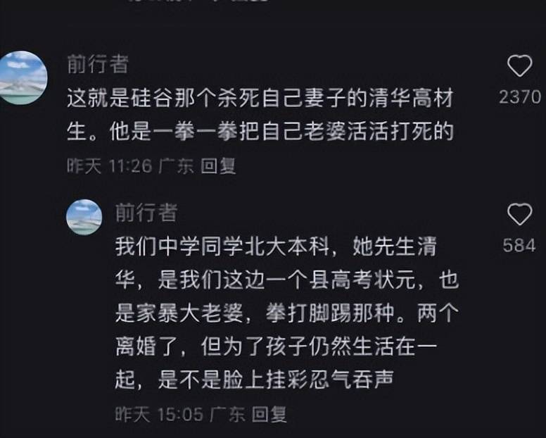 看到有与他们很近的人说,是之前女方和他有争执,然后女方先动手打他,他还手后,女方报警,然后留下案底,在美国对他身份职业几乎是致命一击,女方不知道报案的严重性,后来找律师想取消案底,但案底是不可能取消的,之后,他们双方有一方出轨,没说是哪方,结果就是最终酿成悲剧。