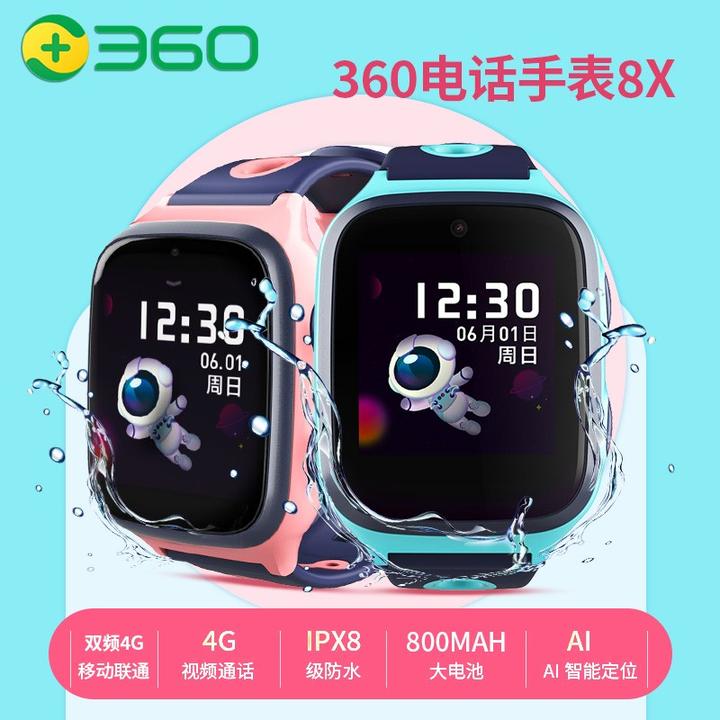 4G全网通IPX 8级防水,专业20米防水(IPX防水等级标准)8重定位(多重定位是什么?)至少7天待机200W摄像头,支持视频电话、拍照支持支付功能、qq聊天、语音助手、一键SOS360儿童电话手表9X有2种颜色:星空蓝/云霞粉。相对8X来说,防水做了加强,专业20米防水;支持qq功能。比较适合7~15岁的小朋友。