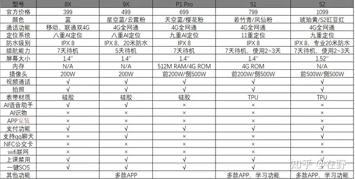 360的儿童电话手表款式比较多,官网上有6个系列,有11个型号。这篇文章只介绍京东和天猫上有的,例如8X、9X、P1 Pro、S1、S2。下面对它们做个一一介绍。