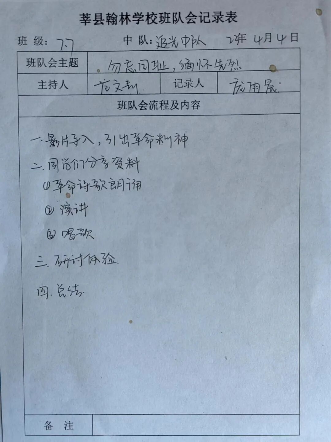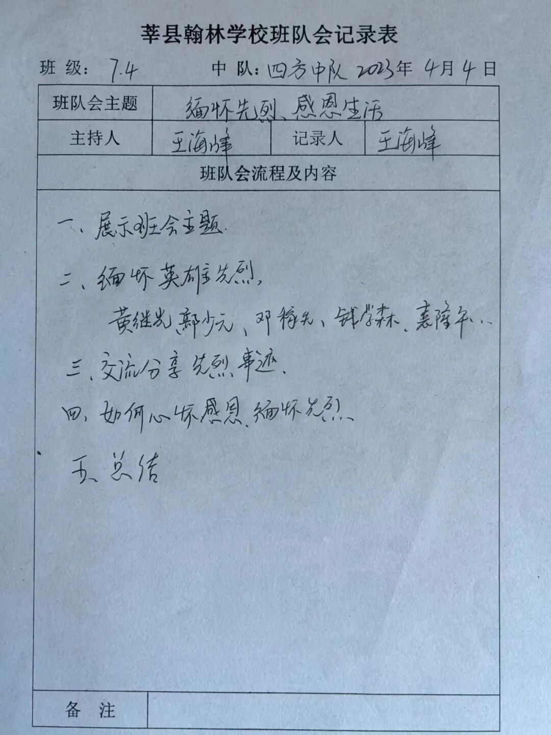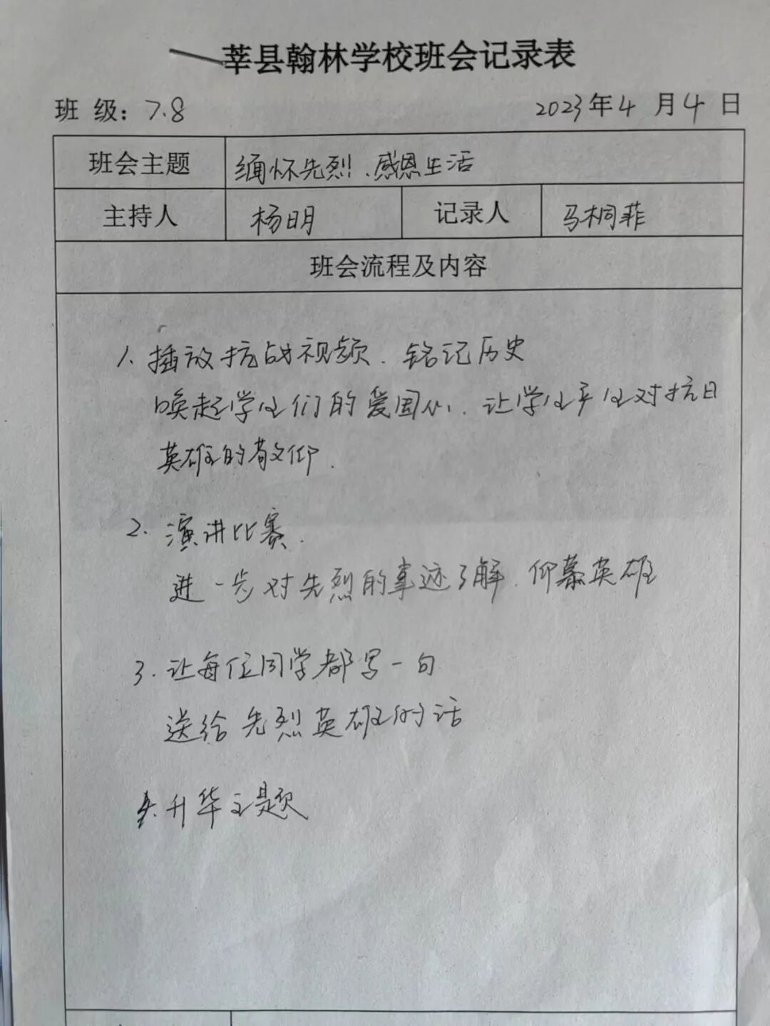 在清明节来临之际,为追寻英雄足迹,继承先烈遗志,弘扬老一辈革命家的精神,莘县翰林学校举行了“缅怀先烈,感恩生活”的主题班会活动。