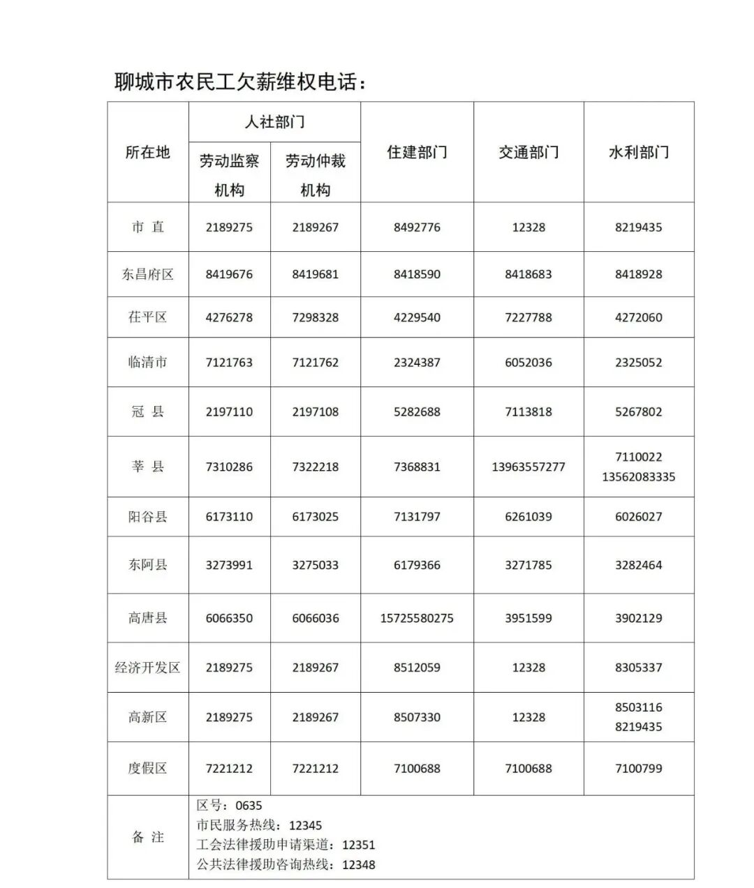 聊城市农民工欠薪维权电话