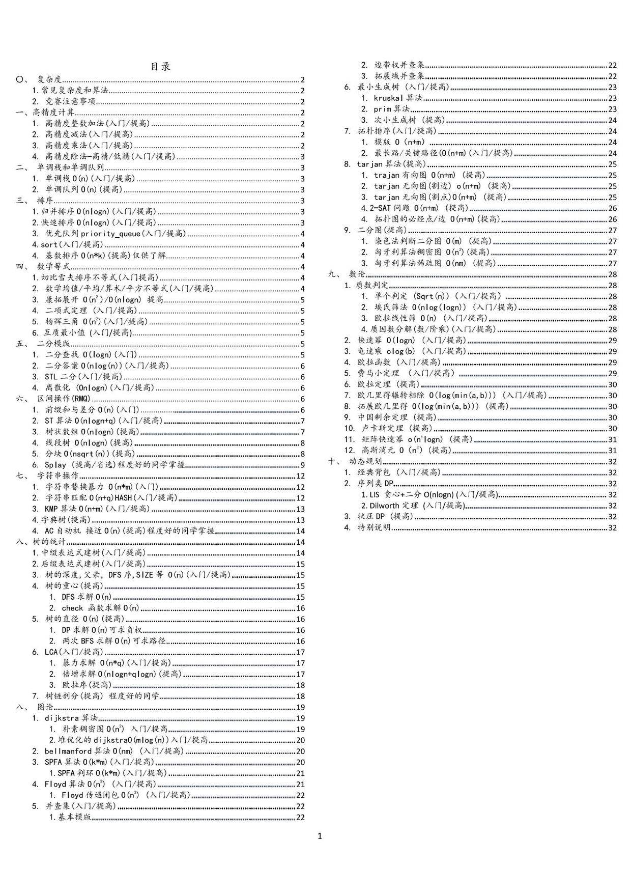 (复赛入门提高必背算法模板)